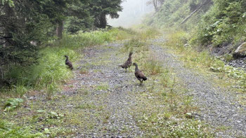 Zwischenzeitlich gibt es auch in unseren Regionen mehrere Wochen mit sehr heißem, untypischen Wetter. Da kommt die Abkühlung in Form von Starkregen, Gewittern und mehreren unbeständigen Tagen gerade recht. Dem Auerwild passt dieses Wetter dann ausgezeichnet. Immer wieder ein schöner und spannender Anblick. Und nicht nur den Raufußhühnern gefällts.